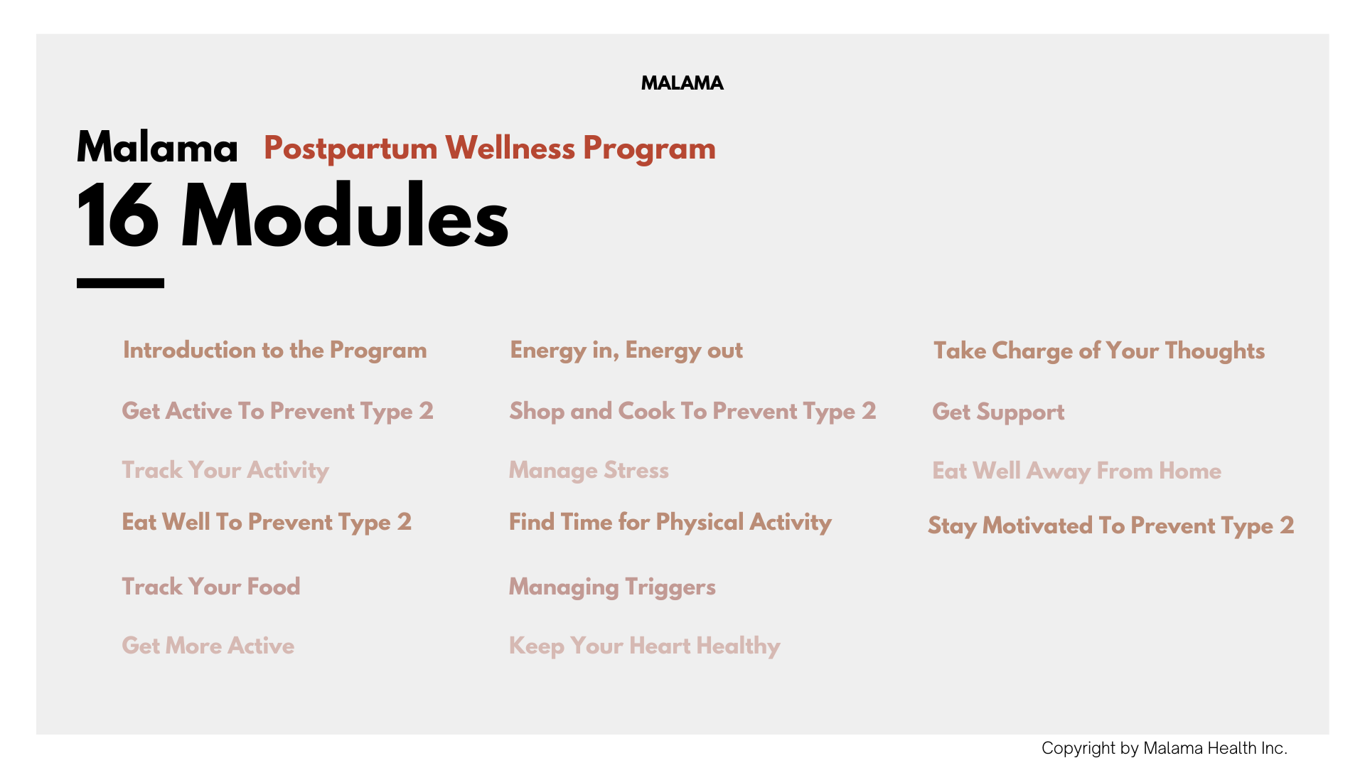 Enroll in Malama’s Postpartum Wellness Program for free and lower your chances of developing type 2 diabetes by 58%